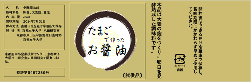 【目的】 卵白液の新規利用と麹菌の新たな用途拡大を目的とし、「卵麹」とそれを用いた「たまご醤油」の調製を行いました。京都府中小企業技術センター、京都女子大学八田研究室の共同研究から生まれた卵白発酵調味料です。
